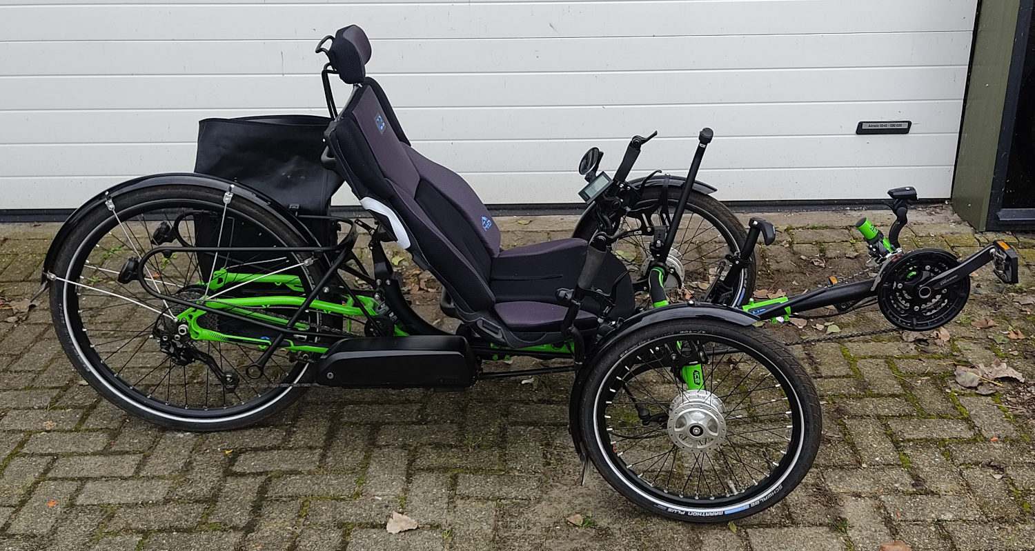 Deze zo goed als nieuwe Ice Adventure HD trike is zeer compleet uitgerust. Hij is voorzien van een achterwiel motor met een grote 17ah/600wh accu. Verder heeft hij een bagagedrager, spatborden, spiegel, verlichting op batterij, spd pedalen, hoofdsteun, helping handles, grote tas en slot. de remmen zijn zeer betrouwbare Sa 90mm trommelremmen, Met de 3×10 Shimano Deore versnellingen is geen heuvel te steil en geen recht stuk te lang. De ligfiets is ongeveer 1,5 jaar oud. Dus je hebt nog 8,5 jaar fabrieksgarantie. Bij de Ice trikes kun je tegenwoordig deze garantie laten overschrijven op jouw naam. Nieuw zo deze mooie trike circa 6600,= euro kosten.